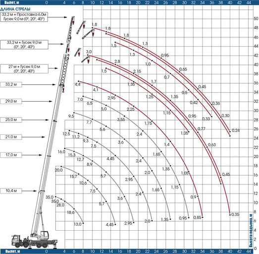 | Длина стрелы | 10,4 - 33,5 м |